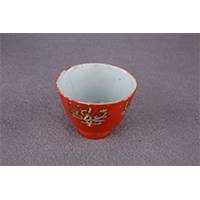 清珊瑚红地粉彩花卉纹杯